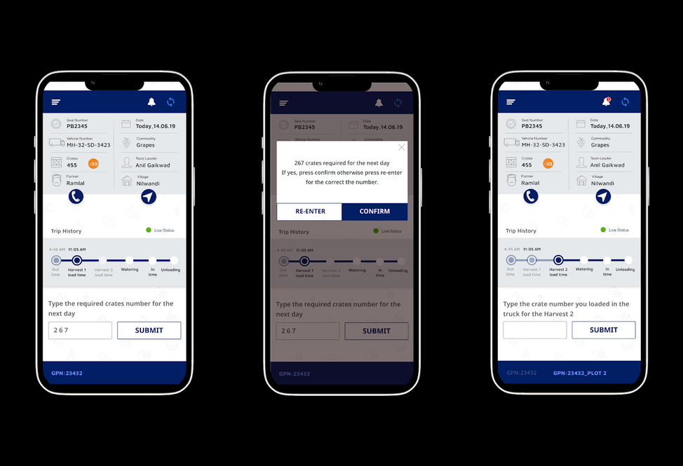 Meet Sandeep, a seasoned farming and harvesting expert who leads a dedicated team of 12 to 14 individuals on their daily grape harvests. Despite their proficiency in agriculture, Sandeep and his team aren't exactly tech-savvy. They prefer simple, reliable local phones, even though their batteries often struggle to last the entire day, especially if they indulge in some music during their journeys. Each evening, Sandeep finds himself waiting until around 10:00 PM at the security checkpoint, collecting the necessary gate pass and seal to kickstart their next day's trip. It's a tedious delay, considering their early morning start time of 4:00 AM and the need to conclude harvesting by 11:00 AM to minimise grape loss, a financial burden that falls squarely on the farmers. Sandeep's team members, rooted in tradition, are understandably skeptical about introducing new technology into their routine. They question what benefits they'll gain from installing an application on their phones. Moreover, there's a lingering concern about their privacy and whether adopting this technology would mean sacrificing their freedom. Despite these reservations, Sandeep knows there's potential for improvement. He envisions a solution that not only simplifies there administrative tasks but also enhances their efficiency and ultimately benefits the entire farming community.